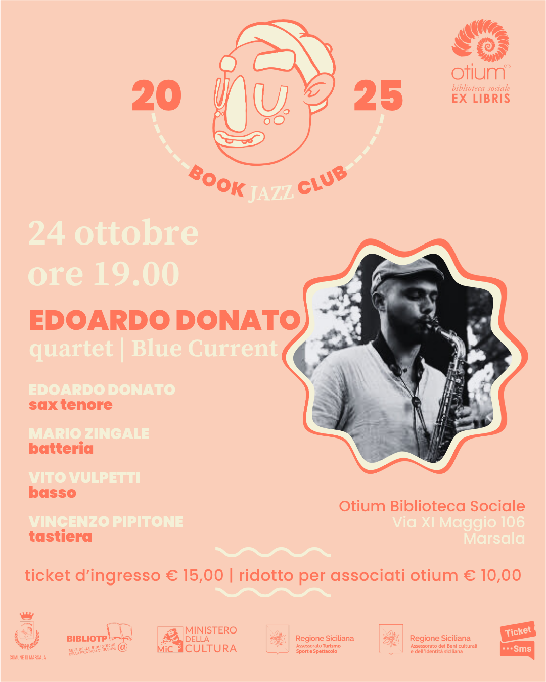 Il primo concerto della stagione musicale autunno-inverno in biblioteca. Edoardo Donato sax tenore, Mario Zingale batteria, Vito Vulpetti basso, Vincenzo Pipitone tastiera.